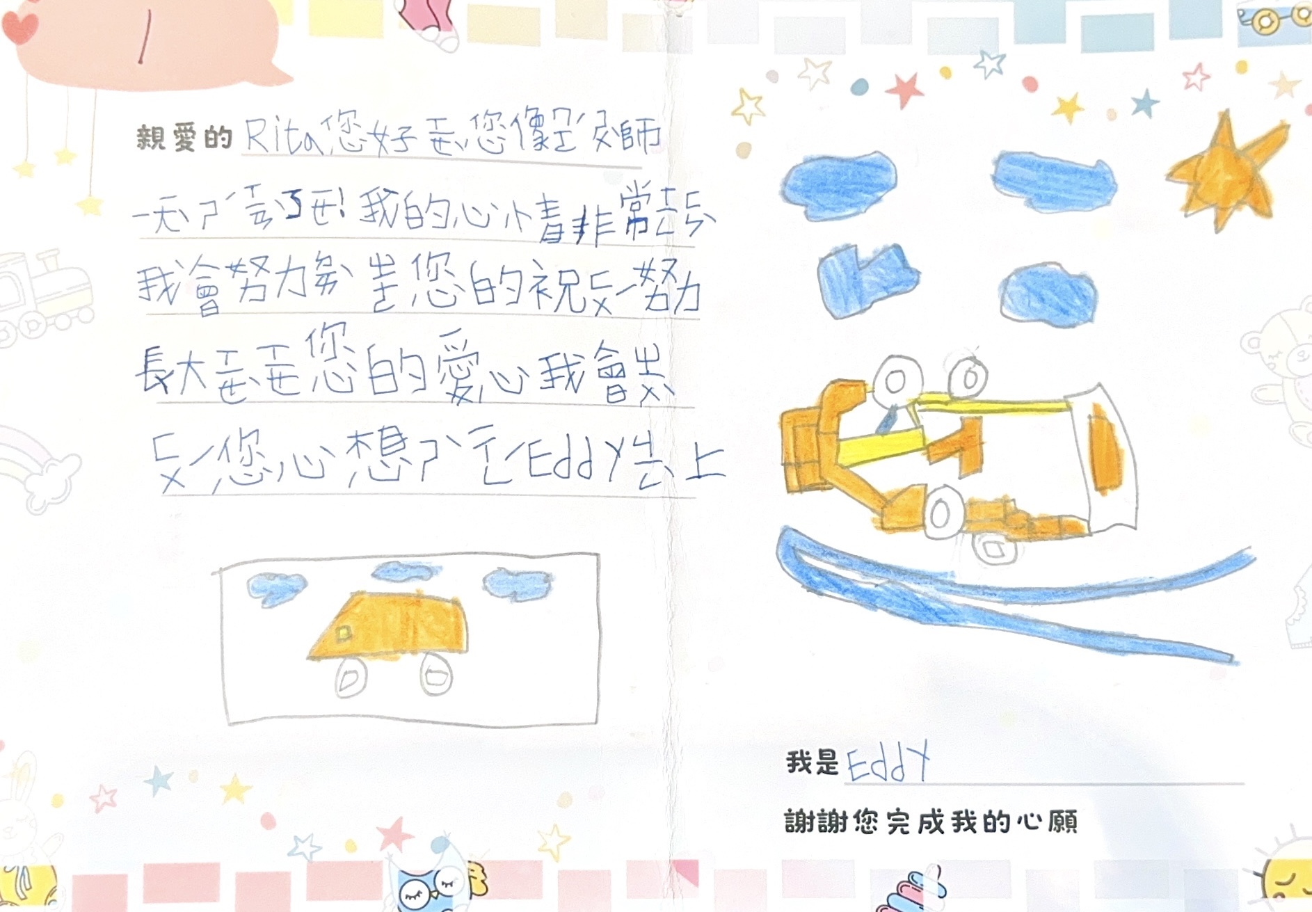 Eddy是一個有稍微過動的孩子,媽媽皆有帶著孩子定期回診,目前用藥物控制中;孩子在校的表現優良,對於老師吩咐的任務皆能如期完成,因本身的個性較躁動,平常的興趣為拼拼積木與樂高,對於賽車的東西更是喜歡,故期許自己能獲得F1賽車系列的樂高。 LEGO 樂高 極速賽車系列 76919 2023 McLaren Formula 1 Race Car麥拉倫 F1賽車(供參考使用,準備相似禮物皆可): https://24h.pchome.com.tw/prod/DEDJ05-A900H4Q81