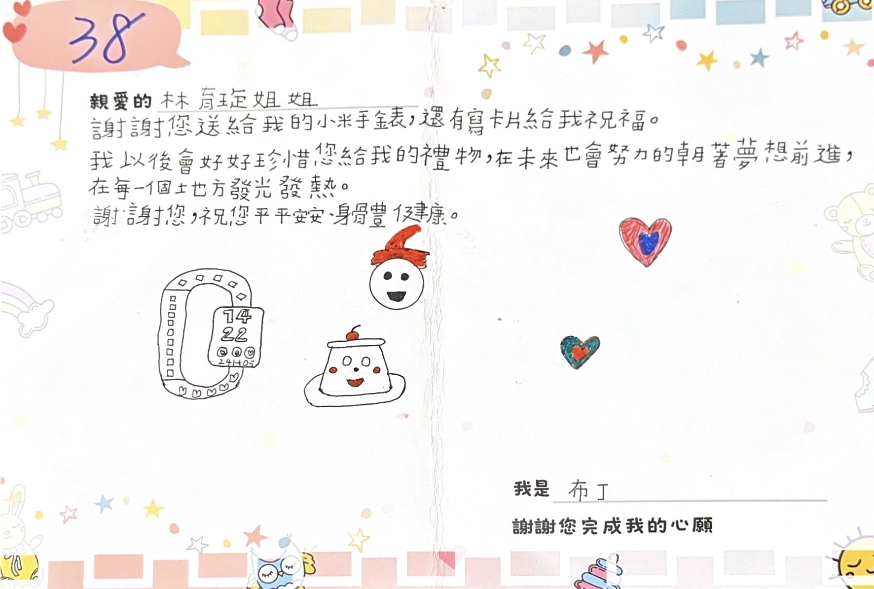謝謝您熱情參與「2025 大聯大愛心圓夢計畫」,和我們一起實現了孩子們的夢想,用一個心願禮物陪伴他們的成長。我們會協助將您的心意,親手傳遞到孩子的手上;後續也會將孩子寫給您的感謝卡片,掃描上傳至心願平台。