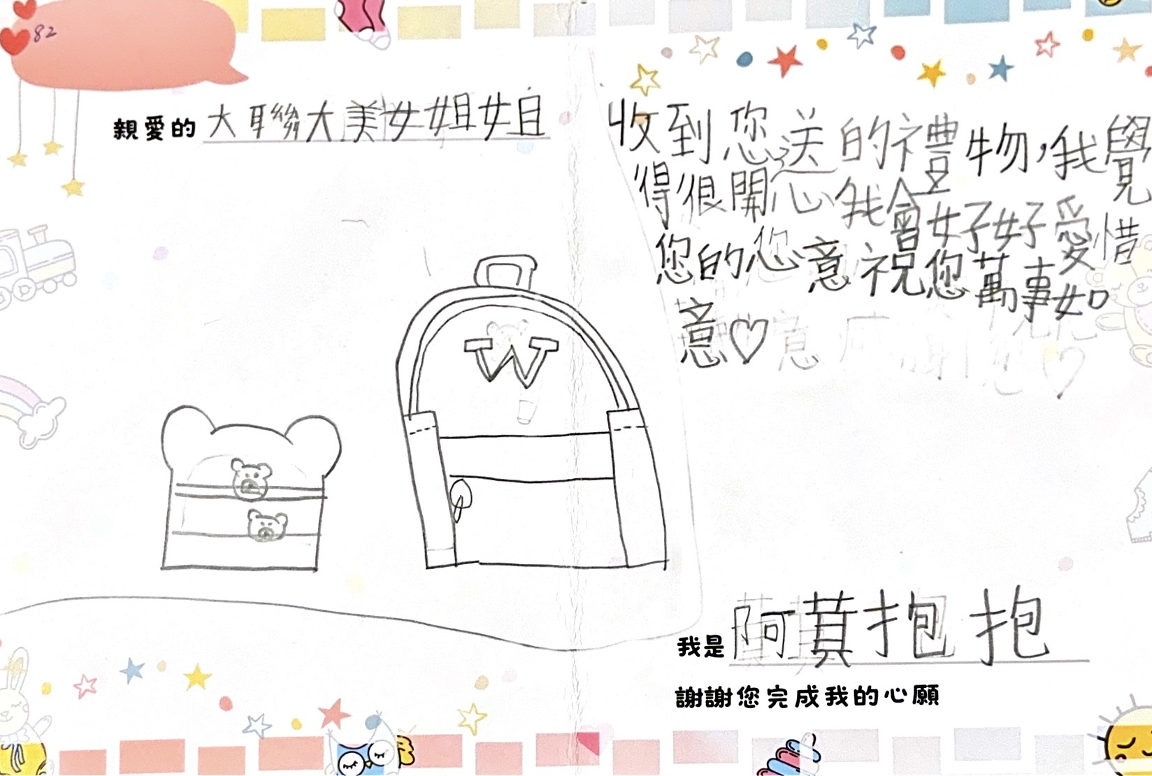 謝謝您熱情參與「2025 大聯大愛心圓夢計畫」,我們已經將您的心意,傳遞到孩子的手上囉!為了將這一切記錄下來,我們將孩子親手寫給您的感謝卡片掃描成圖檔上傳至此,讓您可以回顧這一整個歷程。再一次謝謝您的無私奉獻和積極參與,期待我們能夠持續在生活中充滿幸福,一同共創夥伴價值,成就更加美好的未來!
