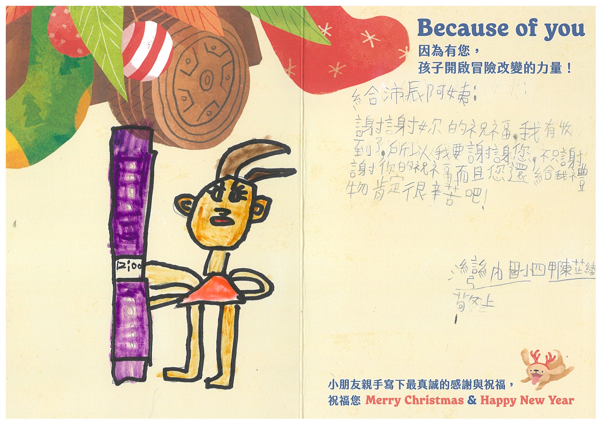 每份聖誕禮物內容:小朋友許下的心願禮物+親手寫下的鼓勵祝福卡片1張
