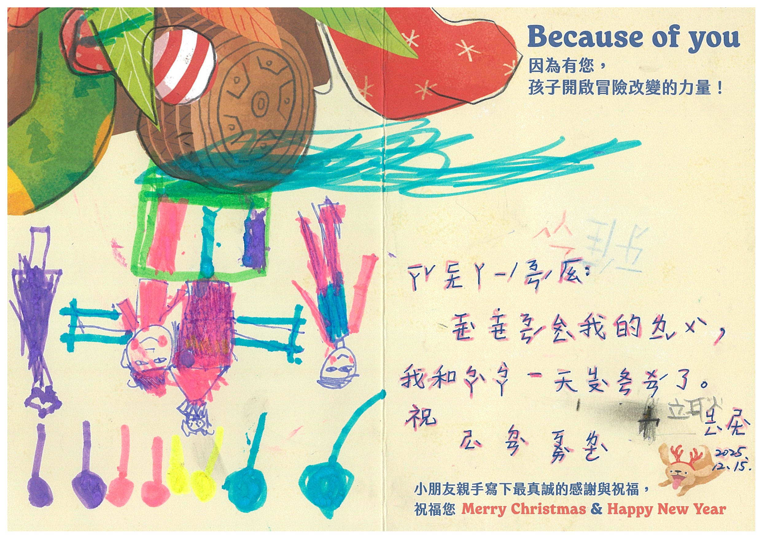 每份聖誕禮物內容:小朋友許下的心願禮物+親手寫下的鼓勵祝福卡片1張