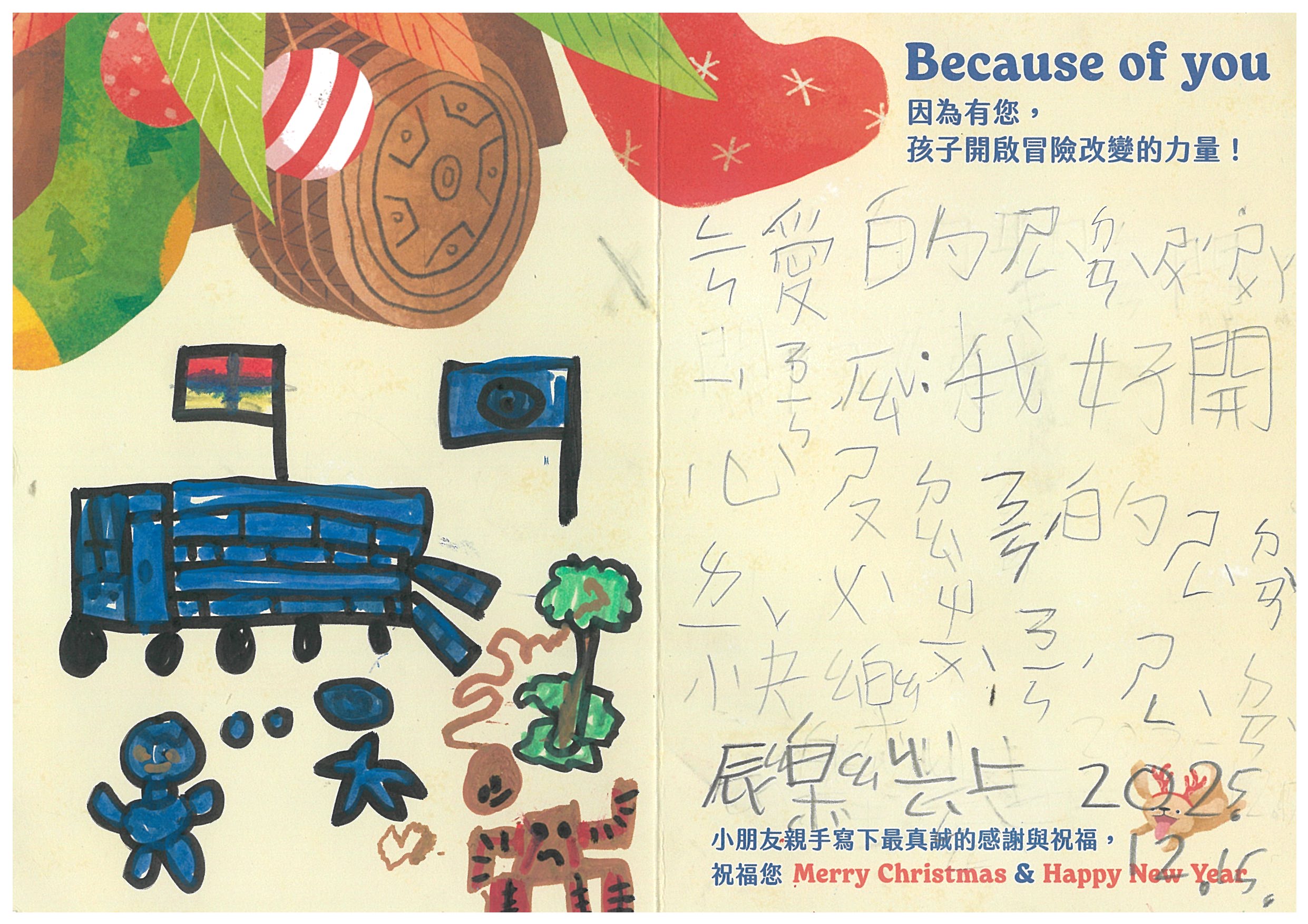 每份聖誕禮物內容:小朋友許下的心願禮物+親手寫下的鼓勵祝福卡片1張