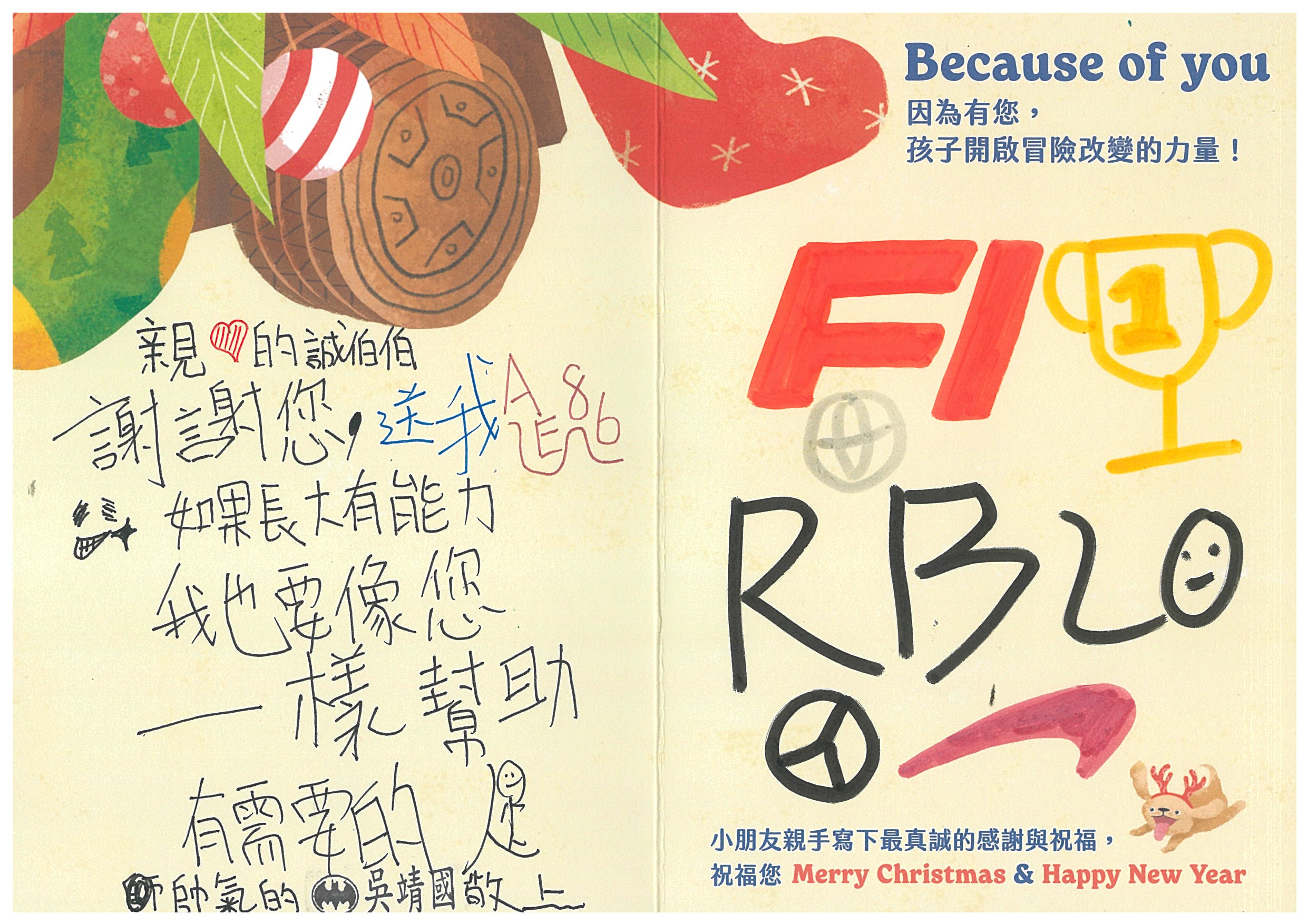 每份聖誕禮物內容:小朋友許下的心願禮物+親手寫下的鼓勵祝福卡片1張