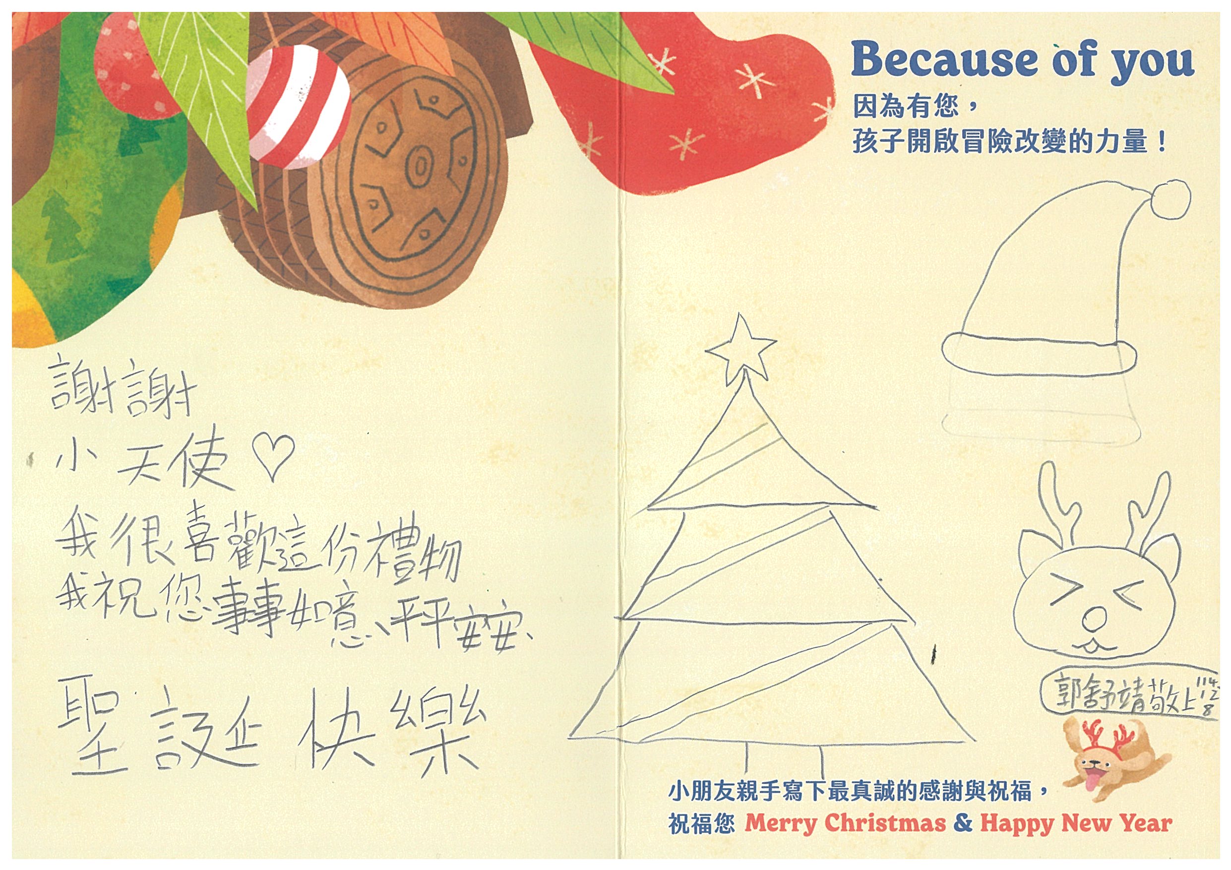 每份聖誕禮物內容:小朋友許下的心願禮物+親手寫下的鼓勵祝福卡片1張